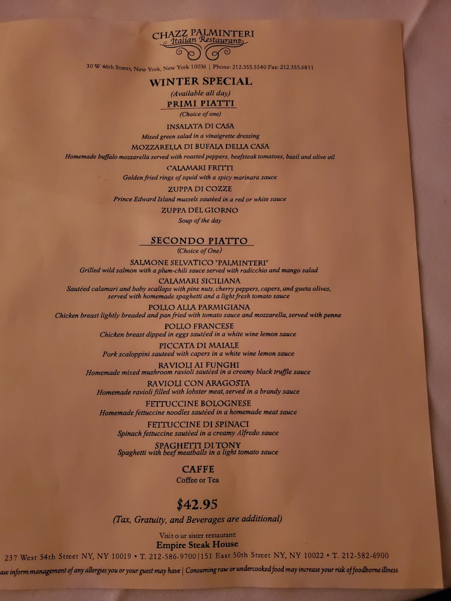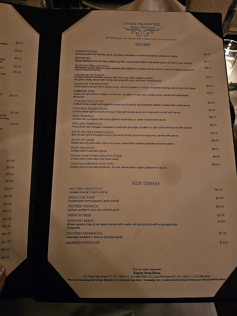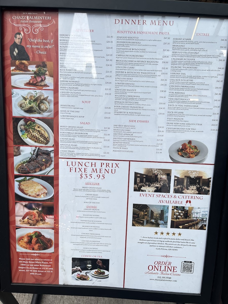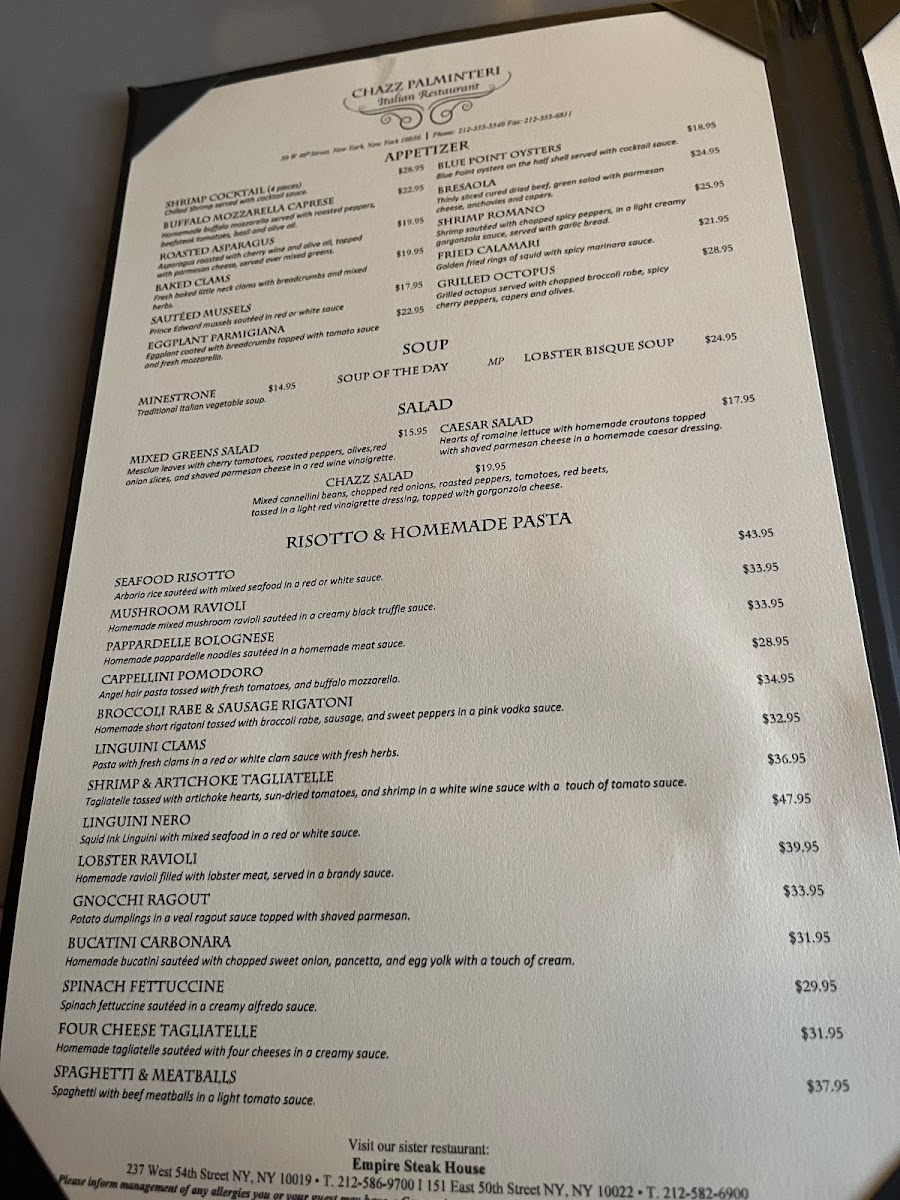 If you're looking for a true taste of Italy in the heart of New York City, the Chazz Palminteri Italian Restaurant Menu offers something for everyone. Located at 30 W 46th St, New York, NY, this place is all about rich flavors and authentic Italian ingredients. You’ll find everything from classic pastas to mouthwatering meats and seafood, all prepared with care and passion. Whether you’re in the mood for a hearty lasagna, a light seafood pasta, or a perfectly grilled steak, there’s no shortage of options to satisfy your cravings.